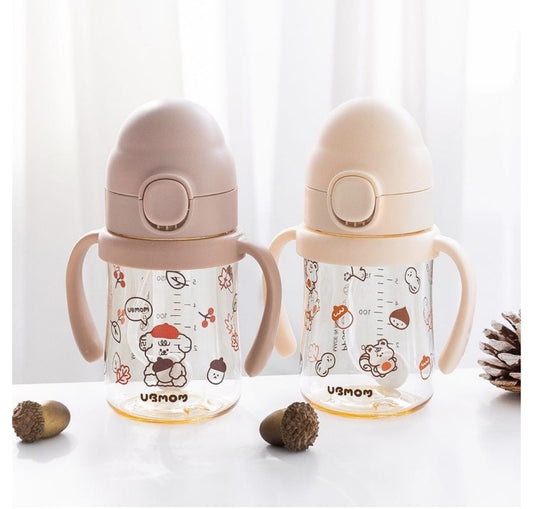 UBMOM PPSU特別版吸管杯 (秋楓賞栗) -標配彈蓋帶重力球及直飲管